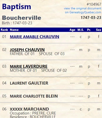 Picture: Chauvin, Marie Amable - Baptism