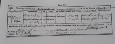 Picture: Robert Lines and Augusta Yeoman Tubby marriage record