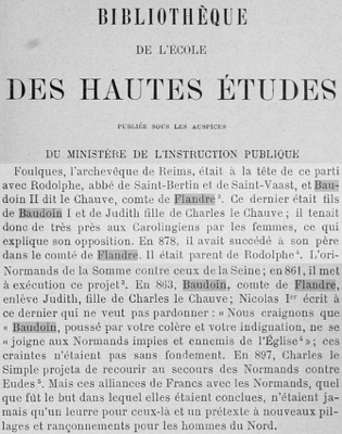 Picture: Baudoin I and II, Counts of Flanders, in Bibliotheque de L'Ecole des Hautes Etudes, pgs. 99 and 222