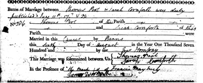Picture: Marriage of Thomas Pool and Sarah Cornforth 1804