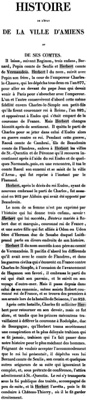 Herbert I and Hebert II de Vermandois in Histoire de l'Etat de la Ville d'Amiens et de ses Comtes, pg. 73-76 |