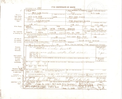Picture: Olive Laura Cushing Death Certificate - 5 August 1959