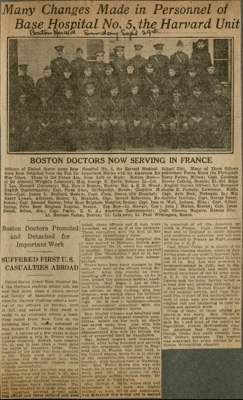 Picture: Many Changes Made in Personnel of Base Hospital No. 5, the Harvard Unit — Boston Doctors Now Serving in France