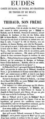 Thibaut de Blois, Richilde and Thibaut le Tricheur in Eudes,Comte de Blois, de Tours, de Chartres, de Troyes at de Meaux, pg 14-16 |