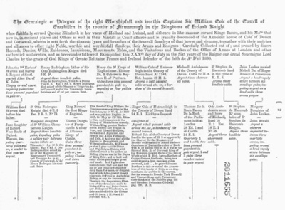 Picture: Chart p2 in "The Genealogie or Pedegree of the Right Worshipfull and worthie Captaine Sir William Cole..."