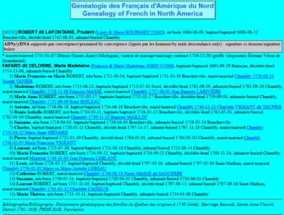 Picture: ROBERT dit LAFONTAINE, Prudent family data by Généalogie des Français d'Amérique du Nord