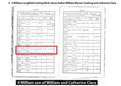 Picture: 4 - 4 William Longfield Cushing Birth shows father William Warner Cushing and Catherine Clara