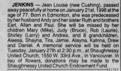 Picture: Jean Louise Jenkins (Cushing) obituary