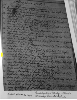 Picture: Sarah Cornforth, Baptism register 1786