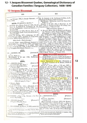 Picture: 12 - 1 Jacques Bissonnet Quebec, Genealogical Dictionary of Canadian Families (Tanguay Collection), 1608-1890