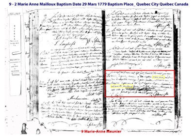 Picture: 9 - 2 Marie Anne Mailloux Baptism Date 29 Mars 1779 Baptism Place_ Quebec City Québec Canada