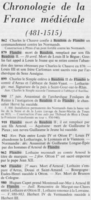 Picture: Baudoin I and II and Arnoul I and II de Flandre in Chronologie de la France Medievale, pgs. 33, 34, 35, 37, 38, 40, 41, 42 and 43