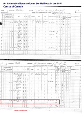 Picture: 9 - 3 Marie Mailloux and Jean Bte Mailloux in the 1871 Census of Canada