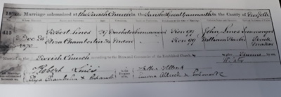 Picture: Robert Lines and Eliza Barber Chamberlain marriage record