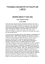"It is probable that the de Limesi's were close kin of [William] the Conqueror. The monks of Hertford Priory reportedly said so, and why would they if it were not so? …Apart from the testimony of the monks…what cannot speak cannot lie. Whilst William rewarded his most noble followers with land and prestige on an enormous scale, those of untitled rank expected smaller portions of his new kingdom. Not so [with] the Limesi's: manors allotted to Ralph and Robert [de Limesi] were numerous and in many counties. This was not only generosity, they were in those places to represent, defend and support all that he wanted and all that he stood for. If they were not deeply committed to him by kinship and political belief they would be in some quiet corner and happy to be so…for they had to be capable of commanding loyalty from soldiery and to build trust amongst the unhappy Saxon and Angles and Brits already here, for they would still work their land but not to their own advantage." |